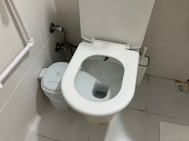 トルコ式ウォシュレット、イスラム教では、用をたした後、水で洗って清めるという習慣があり、ロールペーパーがないところがある。しかし、宗教や文化が異なる国から観光客が増え、洋式化が急速に進んでいるとのこと、写真のトイレ中央部から冷水が噴射する。左奥に蛇口がありそこで水圧を調整する。なかなか快適であった